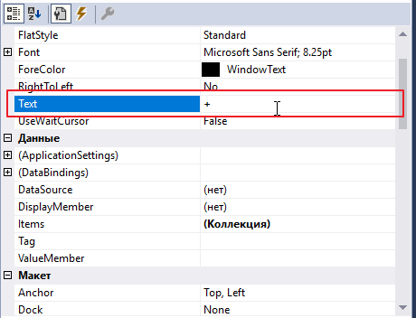 чет негусто, ну и ладно. И еще установим свойству Text значение +