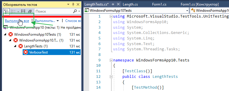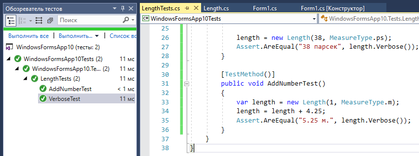 и если запустить этот код прекрасно выполнится и тест будет зелененький.
