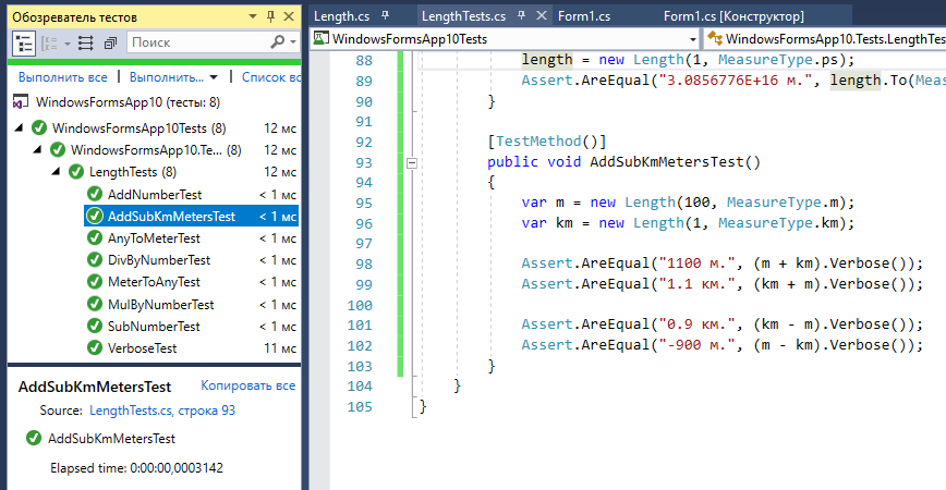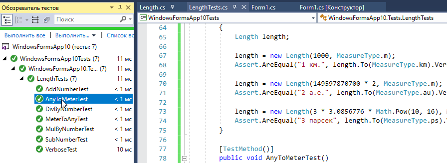Объявим перечисляемое значения для меры. Переключимся на файл Length.cs, где лежит наш класс и добавим туда: