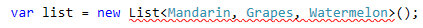 var list = new List<Mandarin,Grapes,Watermelon>();