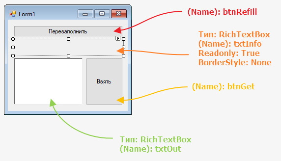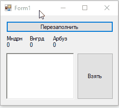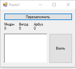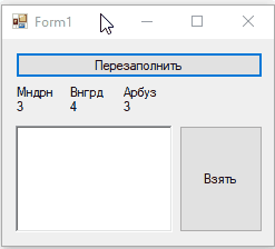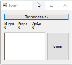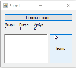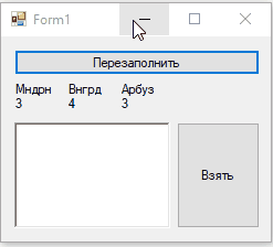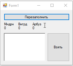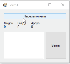 и подцепим эти методы в кнопке “Перезаполнить”, получится такой код: