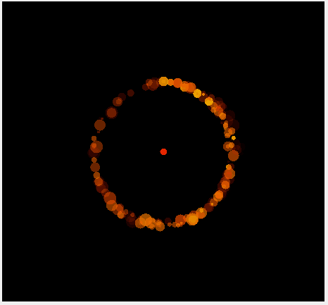 Реализовать эмиттер который перемещается по окружности, а направление вылета частицы меняется по касательной к окружности.