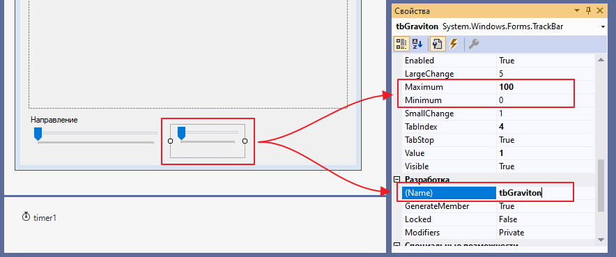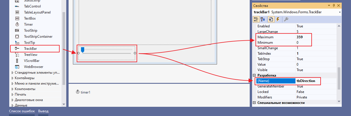и теперь добавляем второй трекбар, прописываем обработчики