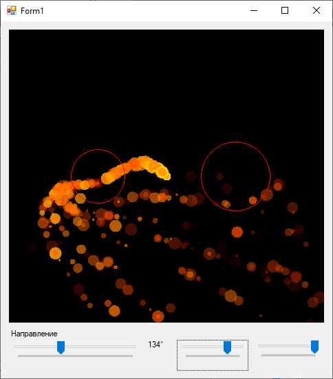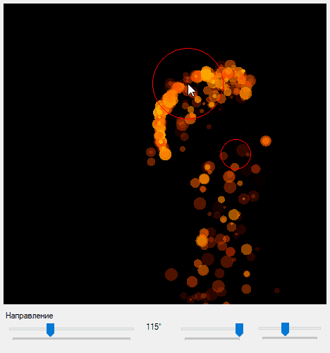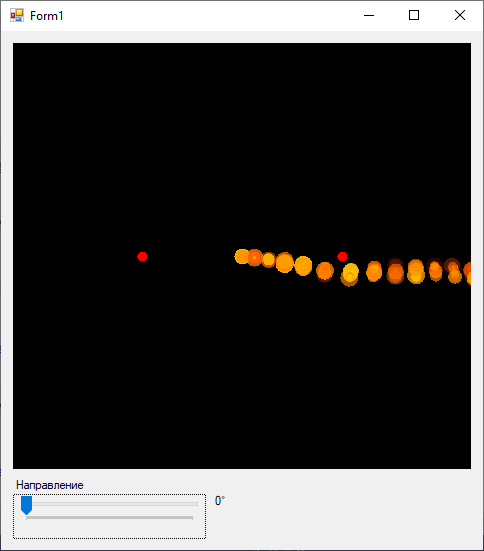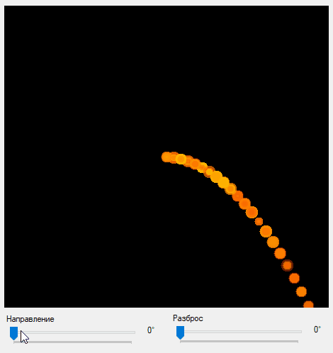 Теперь, когда эмиттер у нас полностью настраиваемый, у нас есть возможность управлять его поведением используя контроллеры на форме.