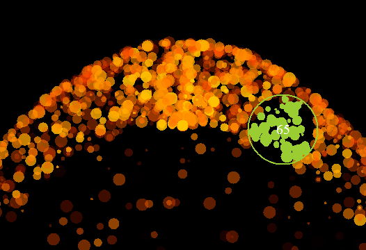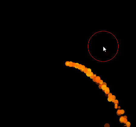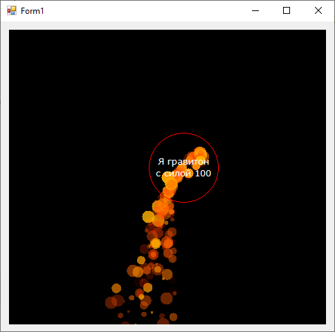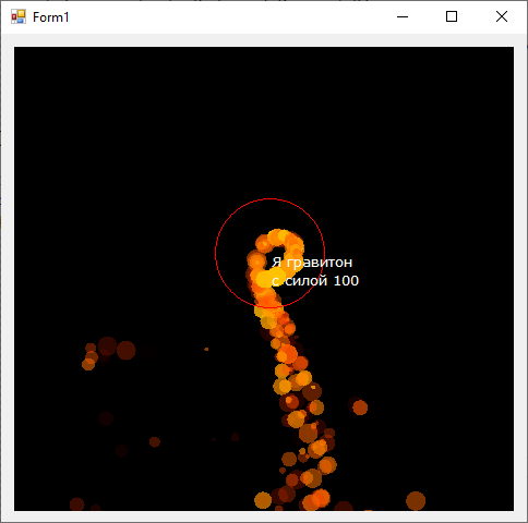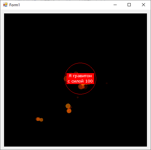 Доработаем наш гравитон так чтобы он притягиваю только те частицы которые попали в красную окружность.